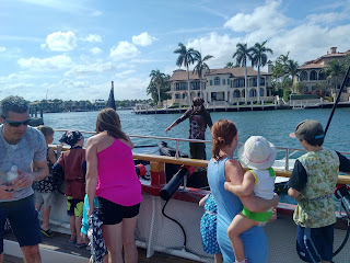 Starbucks walk in the morning, nice and early too so we could get to the beach by 9AM. Buried the kids in the sand, dipped toes in the Atlantic, Evie went for a nap and Charlie, Mom, Grandma and Dad headed out on an adventure. Went for some tasty mexican food and then took Charlie to be a pirate for the afternoon. After the Pirate excursion, we were back home for another swim and some stick (palm) ball. Charlie hit a big dinger and that ended the game. Ang and Case out for dinner and back to our new favorite Lauderdale watering hole.